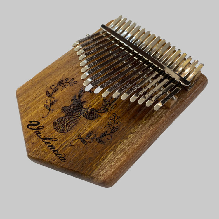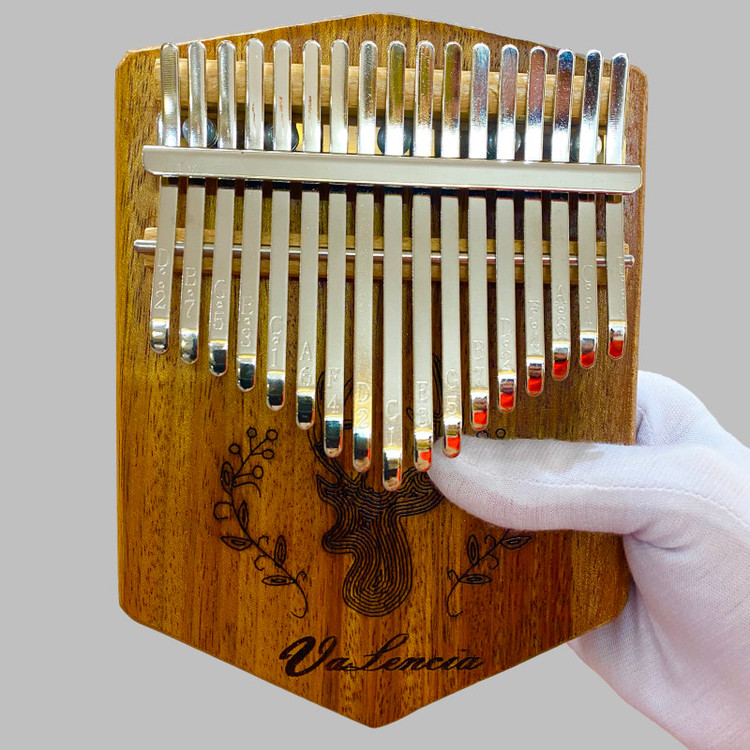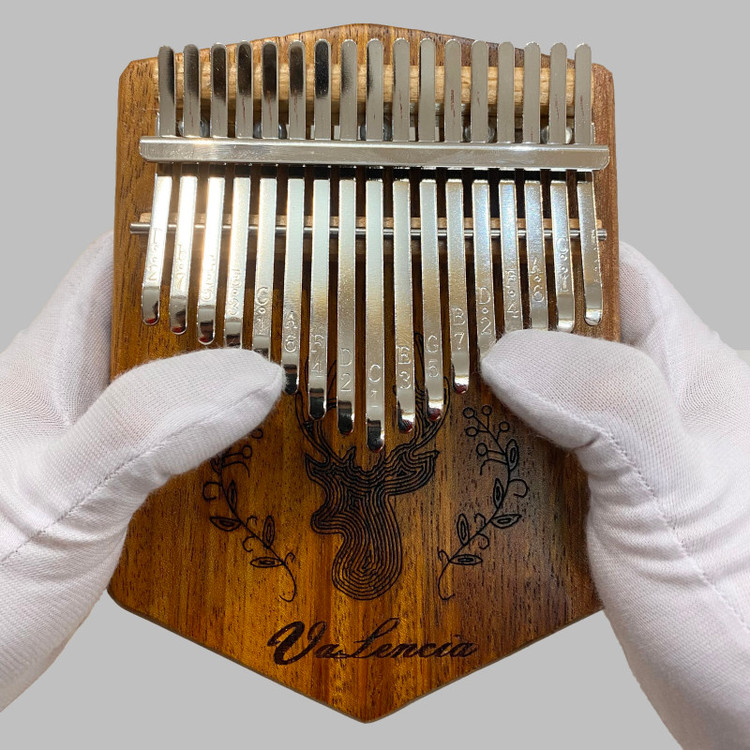 کالیمبا تخته ای والنسیا مدل VPLATE دارای 17 تیغه،که تعداد استانداردی از تیغه یا زبانه های فلزی را دارا بوده،از ساز های وارداتی درجه 1 میباشد،که با بالاترین کیفیت و استاندارد های جهانی ساخته شده. این نوع ساز تیغه ای،که خاستگاه اصلی آن کشورهای آفریقایی بوده،یکی از سازهای قدیمی این سرزمین به شمار می آید و بیش از هزار سال قدمت دارد.دارای هفده عدد تیغه ی فلزی است که وظیفه ی تولید صدا را برعهده دارند.این ساز با رنگ مات،از چوب اوکومه ساخته شده،که چوبی فوق العاده برای ساخت کالیمبا میباشد و در معدود ساز هایی از این چوب استفاده شده. تیغه های این ساز در بین ساز های وارداتی،از بالا ترین کیفیت برخوردار است که از فولاد ضد زنگ ساخته شده،تا بهترین کیفیت و بهترین صدا را به ارمغان آورد.این ساز همراه با چکش کوک تقدیم میشود.درمجموع این ساز برای هر کسی که تمایل دارد اصول نوازندگی کالیمبا را بیاموزد،و به خصوص برای افرادی که در نوازندگی این ساز مهارت دارند،انتخابی مناسب است. به دلیل طبیعی بودن چوب،ممکن است نقش و نگار چوب ساز با تصاویر متفاوت باشد.