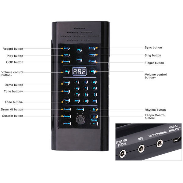 USB , خروجی MIDI , هدفون , جک 3.5 میلیمتری